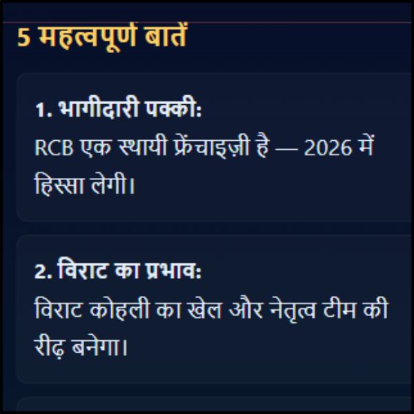 10. निष्कर्ष क्या आरसीबी खेलेगी 2026 आईपीएल? | पूरा सच और भविष्य की तैयारी