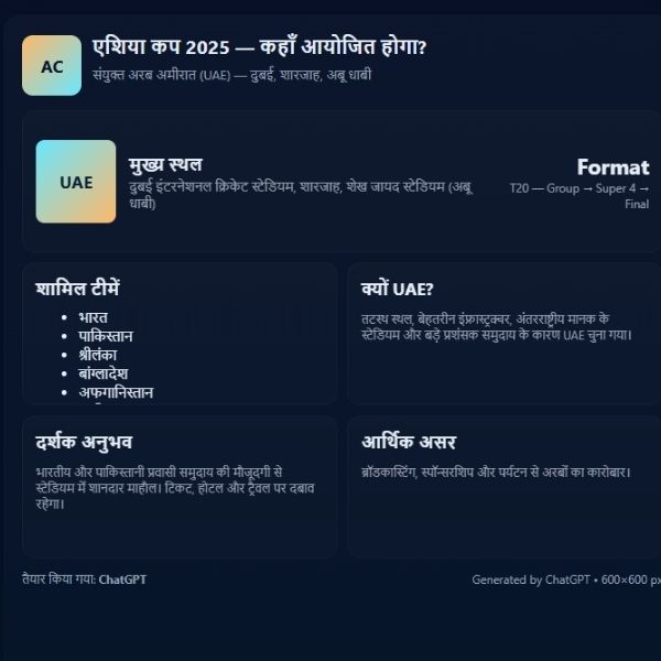 तो दोस्तों अब सवाल का जवाब साफ है — एशिया कप 2025 का आयोजन संयुक्त अरब अमीरात (UAE) में हो रहा है।