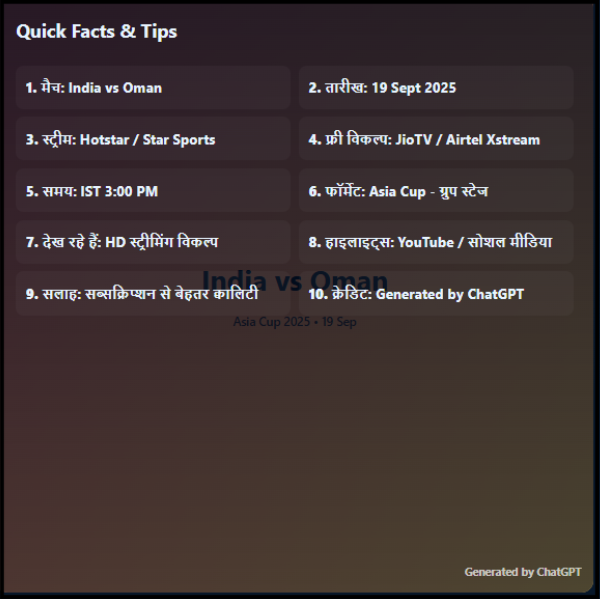 निष्कर्ष India vs Oman Live Streaming | Asia Cup 2025