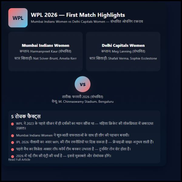 WPL 2026 का पहला मुकाबला सिर्फ एक क्रिकेट मैच नहीं, बल्कि महिला क्रिकेट के नए युग की शुरुआत है। जब Mumbai Indians और Delhi Capitals जैसी टीमें आमने-सामने होती हैं, तो खेल का स्तर आसमान छू जाता है।